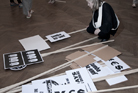 Edwina Hörl’s fashion performance was held at Linde Waber’s 70ies birthday and closing party at the Leopold Museum in Vienna. The performance had shown a protest march through the atrium of the museum and was based on the idea of Hörl’s autumn/winter collection 危機 / KIKI / KRISE / CRISIS. The Leopold Museum was featuring the Viennese artist Linde Waber (*1941) with the exhibition „Linde Waber and Companions“ from February until May in 2010.