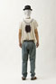 しかし、モードというのは、現代生活の縮図です。エドウィナ ホールの服は、この力を持っています。モニュメントになり、モード市場に周期的に出現するデザインボキャブラリーを再利用するのではなく、現代を映し出す形態を創造しています。MiMiでは、服という形態の数々が生きることの可能性と「どこか別のところで」魅力的に見せる活力をも持っています。これらの服は、風雨を避けるテントのように、この中で人は安らげるのです。これらの服は、屈服で終わるのではなく、大海原や砂漠を渡る楽しさを表現しています。境界線を越える行為である可動性は偉大さの源泉-ミグレーション(外国への移住)と呼ばれる塀の間の現代の細く歩きにくい道に対抗する可能性をもっています。