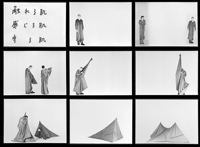 "As we see it these elements are as envelopes within envelopes sharig space and function." Skin encompassing the organic body, clothes protecting the husk.